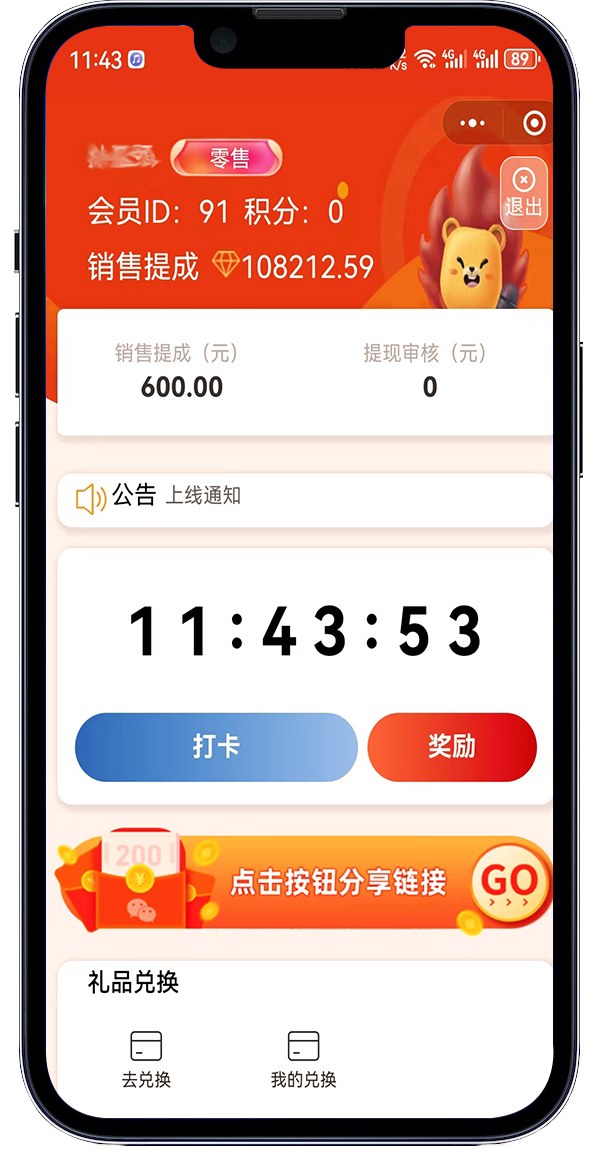 道特合商城小程序通过“打卡活跃度”和“销售提成”双重机制激励用户参与,用户可通过自身活跃、带动客户活跃及直接销售获取收益,形成分层奖励模式。